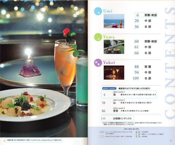 編集部の独自取材により、カフェ、ショップ、街歩き、ビーチなどさまざまなテーマでおすすめスポット100カ所を紹介する『OKINAWA 100シリーズ』。沖縄県民向けの内容だが、本土からの観光客にとっても便利なガイドブックとなる。写真はシリーズ中の1冊『眺めもおいしいお店100』。
