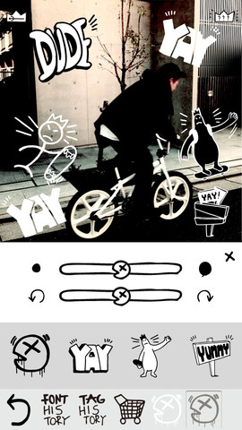 同アプリは、黒と白のみでモンスターなどをペイントするアーティスト“Ly”がデザインしたTAG(スタンプ)を写真に貼れるアプリ。4種類のオリジナルフォントを収録しており、写真にメッセージも書ける。また、古いフィルム風・ポラロイドカメラ風などTAGやフォントに合う風合いにも変えられる。作成した写真をSNSでシェアすることも可能だ。