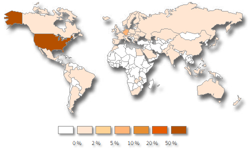 脆弱性を狙う悪用ツールキットは、「Cool」「Blackhole」「Redkit」「Impact」などで、シマンテックの遠隔測定によるとこれらの悪用ツールキットの攻撃を毎日30万件以上も遮断しており、特に北米への攻撃が著しいという。