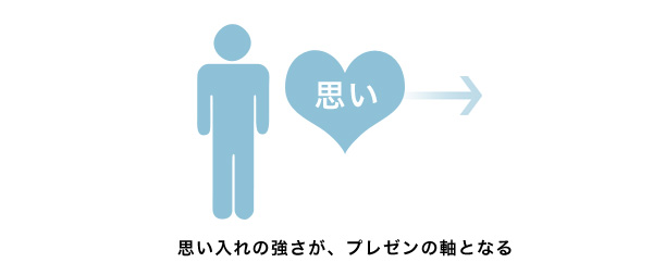 プレゼン準備期間とは「第三者に伝えるための準備期間」であると同時に、プレゼンター自身が、その提案内容に「絶対的自信=確信を得る」ための時間であるともいえる。思い入れの強さによって提案力が増して、より人を引きつけるパワーとなる。