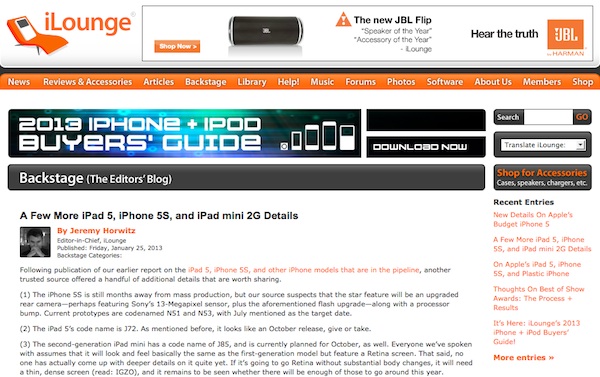Apple製品などのテクノロジー情報サイト「iLounge」が、次期iPad / iPhone / iPad miniについての情報を掲載している。
