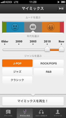 「うたパス」は、最新の洋楽や邦楽から、なつかしのヒット曲まで、多彩なジャンルの音楽の聴き放題サービス。「公開」して音楽を聴けば、音楽体験の共有も可能だ。また、自分の好きなムードや年代、ジャンルで絞り込んで音楽を聴くこともできる。月額情報料は315円、Apple IDで利用する場合は450円/30日。