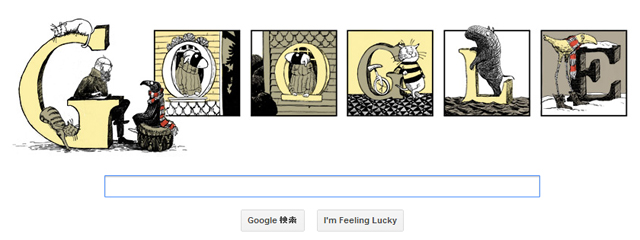 Googleは、2013年2月22日のホリデーロゴをアメリカの絵本作家、エドワード・ゴーリー生誕88周年を記念したデザインに変更した。