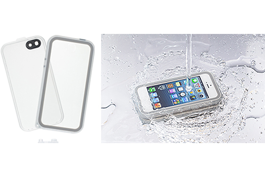 「防水ケース for iPhone 5」は防水保護等級IPX5/IPX7準拠の防水性能を備えたスリムな防水ケースで、ネックストラップ専用ストラップホール付き。「ブックスタイルケース レザータッチ for iPad mini」は高級感のある合皮素材を採用しており、動画鑑賞に便利なスタンド機能やカードポケットなどを搭載する。「スタイリッシュスリムケース for iPad mini」は薄くコンパクトな設計で、表面にはヘアライン加工を施している。