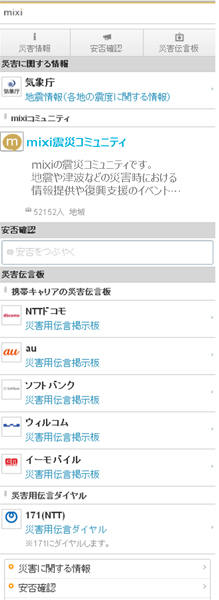 mixi、大規模災害発生時に役立つポータルページを提供