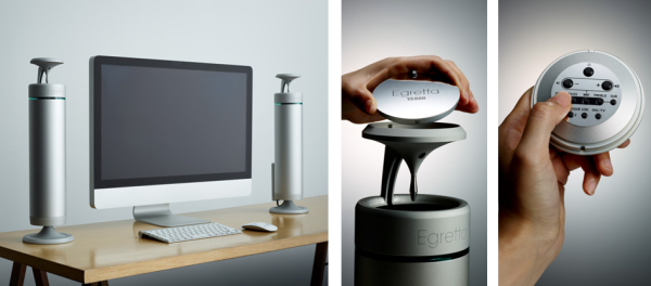 両製品は、“360°無指向性の音楽再生”をコンセプトにした「Egretta」ブランドの新モデル。共にスリムなアルミ製円筒型デザインで、上向きのスピーカーユニットによって音は360°無指向性となり、部屋のどこに設置しても同じ音質を保つことができる。スピーカーは8cmフェーズプラグ付きの竹繊維コンポジットコーンを採用。また、筐体に「構造による低温増幅」技術を用いることによって、低温の音質不足のカバーに成功している。