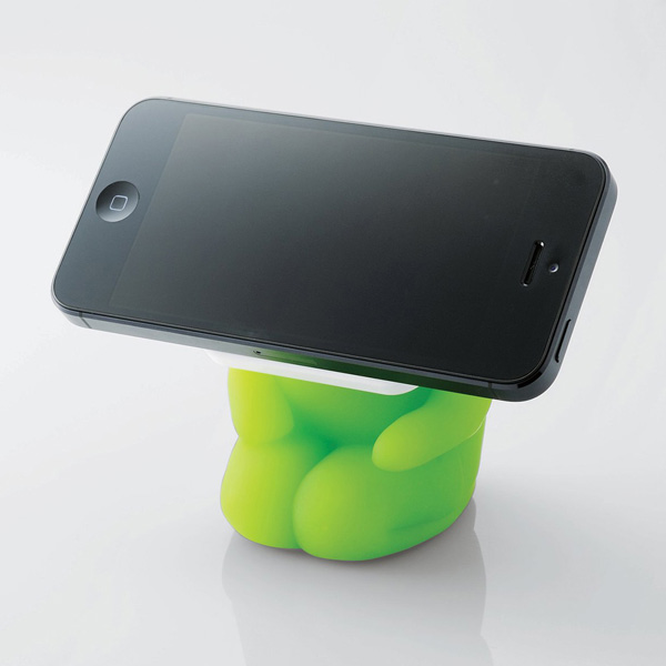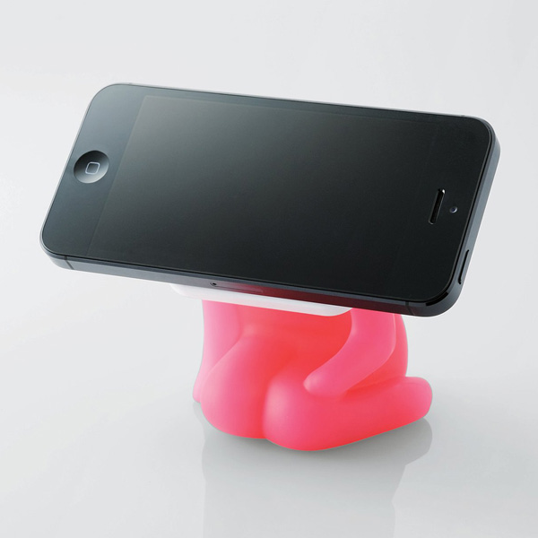 エレコム、座っている人の形を模したスマホスタンド「アイボウスタンド」