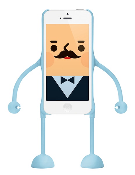 同製品は、手足のついたコミカルな人型iPhone5ケース。手足にワイヤーが入っており柔軟性があるため、イヤホンを手に持たせたり、ちょこんと座らせてスタンドにしたり、ノートパソコンにしがみつかせたりとさまざまなポージングを楽しむことが可能だ。カラーはブルー/ピンク/ホワイトの3色を用意している。