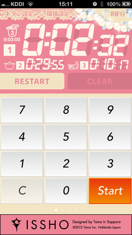 同アプリでは、終了時間を音声で知らせるだけでなく、残り時間も音声でお知らせ。カウントダウンタイマーとしても利用可能だ。パスタや卵のゆで時間、お風呂のお湯を貯める時間など、使用頻度の高い項目は登録することが可能だ。また、時間はテンキーによる入力が行えるほか、スキンやボタンのデザインカスタマイズ、フラッシュライト機能も備えている。