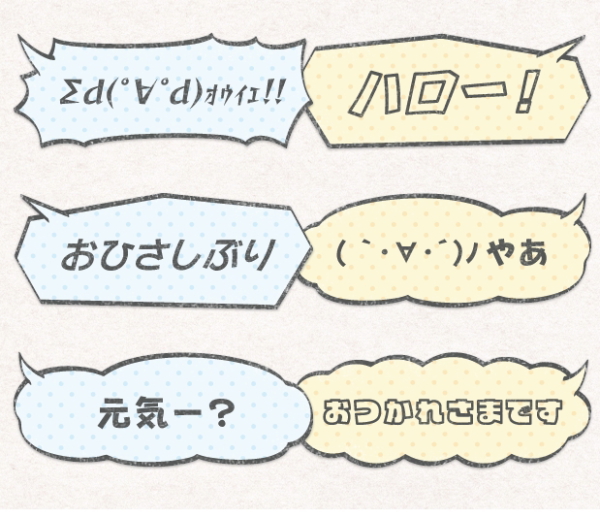 同機能は、友人一人につき1日1度だけ、基本あいさつ6種類の中から1つを送れるコミュニケーションサービス。種類は「ハロー!」「(`・∀・´)ノやあ」「おつかれさまです」「Σd(゚∀゚d)オウイエ!!」「おひさしぶり」「元気ー?」となっており、1クリックで送信できる。あいさつする相手が誕生日の場合は、特別な選択肢が登場する。