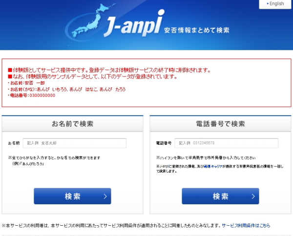 「J-anpi ~安否情報まとめて検索~」は、大規模災害時に、各通信キャリアの災害用伝言板や、報道機関、各種企業・団体が保有する安否情報をまとめて検索・確認できるWeb共同サイト。2012年10月の運用開始時点では10社12種類の情報が一括検索可能だったが、今回、東京都・千葉市・兵庫県猪名川町の各自治体、静岡県立大学、名古屋商工会議所、Comverse Incが連携先に加わった。