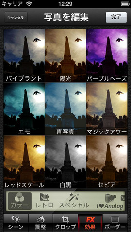 また、同アプリで撮影した写真をさまざまなデバイスで自動的に同期できるiCloudのライトボックス同期機能を使用できるほか、TwitterやFacebookで友人にシェアすることも可能だ。