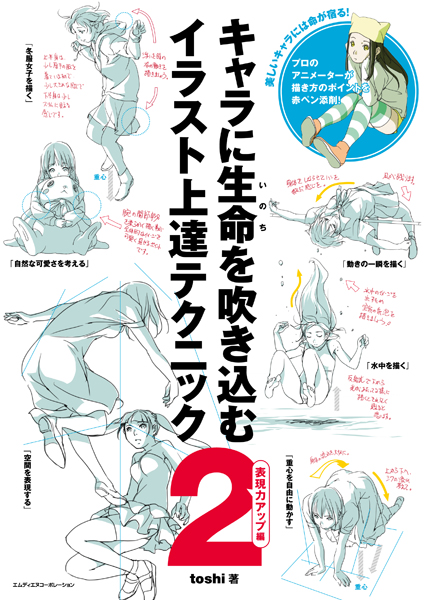 本書は「キャラに躍動感がない」「キャラの魅力がいまひとつ伝わってこない」など、イラスト描画の悩みを解決するためのヒントを新しい視点から集めた「キャラに生命を吹き込むイラスト上達テクニック」シリーズの第2弾となる。アニメーターでもある著者toshi氏が、赤ペン方式で魅せるポイントを解説。「水中を描く」「暑さを描く」「男女の描き分け」「きものの乱れを描く」など、基本となる描き方から、マニアックなシチュエーションまで、想像力をかき立てるイラスト描写のヒントを幅広く掲載している。