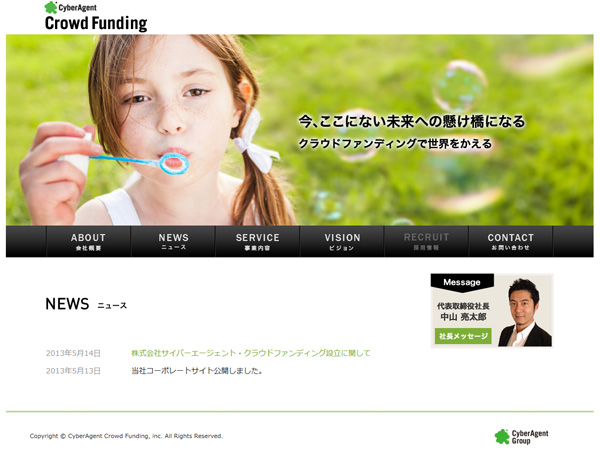 株式会社サイバーエージェントは5月1日、株式会社サイバーエージェント・クラウドファンディングを設立し、今夏にサービスを開始すると発表した。