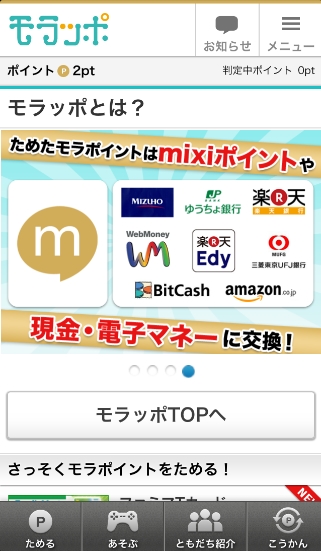 ミクシィ、アプリDLやアンケート回答で現金やギフト券が手に入る、新ポイントサービス「モラッポ」