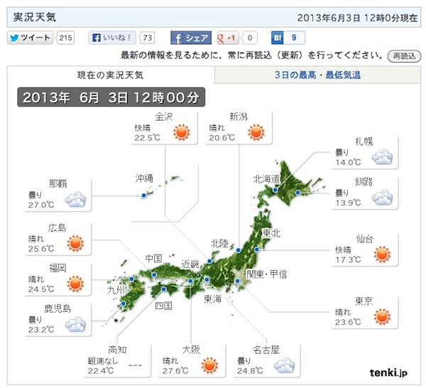 日本気象協会、tenki.jpで“今”の天気がわかる「実況天気」を開始