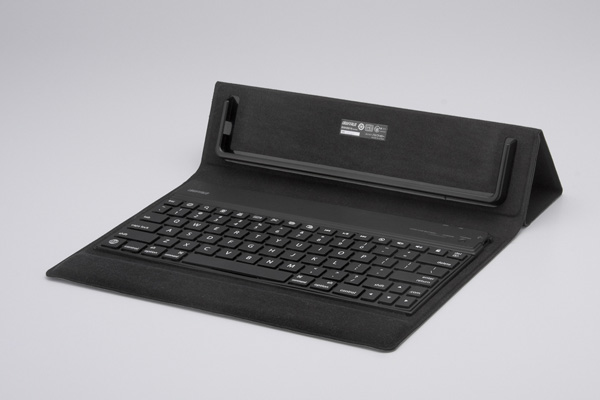 本製品はiOS6/HIDプロファイルに対応し、英語配列で83キーを搭載。画面表示や音量調整などを可能にする17種のファンクションキーが用意されている。カバー部を三角に折りたたむことでスタンドとしての役割も果たし、ノートパソコンのような操作感での使用が可能。カバーの開閉によるiPadの自動スリープ/復帰機能にも対応している。突起部を除く本体サイズは277(幅)×24(高さ)×195(奥行)mmで、重量は約460g。USB充電できるリチウム充電池を内蔵し、満充電時の動作時間は約2ヵ月となっている(電源ONの状態を1日8時間/iPadの操作の5%をキーボードに割り当てた場合)。