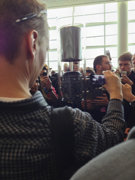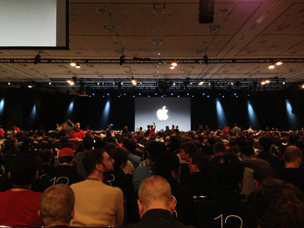 基調講演で、いつものイントロダクション的な数字の紹介やデモののち、次はMacについての紹介とティム・クックがいうと、会場のいたるところからため息だか鼻息だかが聞こえた。参加者のうちMacアプリ開発者とiOSアプリ開発者がどの程度の割合かはわからないが、iOS 7の紹介を期待していた人々が圧倒的に多かったのは明白だ。