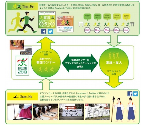 第一弾として、2013年3月に開催された「京都マラソン 2013」において、マラソン×ソーシャルメディア連携型のプロモーション企画「SOCIAL_MARATHON in 京都」を展開したという。