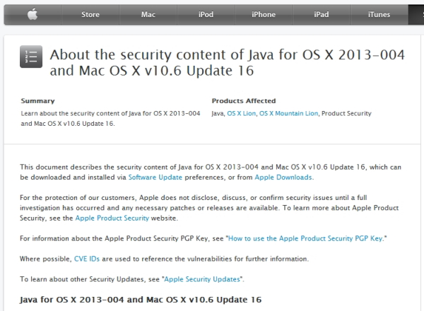 Oracleの「Java 1.6.0_45」に対する脆弱性の修正を受けて、AppleではJavaを「Java 1.6.0_51」にアップデートする形となった。