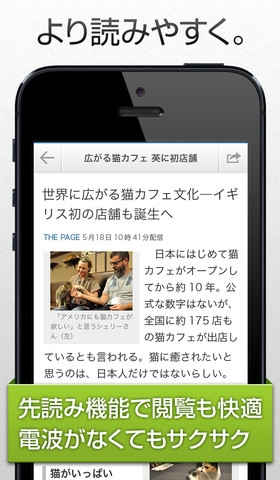 記事タイトルの下にニュースの論点や解説など50文字以内でまとめた概要文の提供を始めたほか、記事ページ下部にある「‘‘」マークを引き上げると、そのニュースの背景や内容を詳しく伝えるページが表示されるようになった。また、アプリ起動時に最大196本の記事全文を読み込むキャッシュ機能も搭載している。