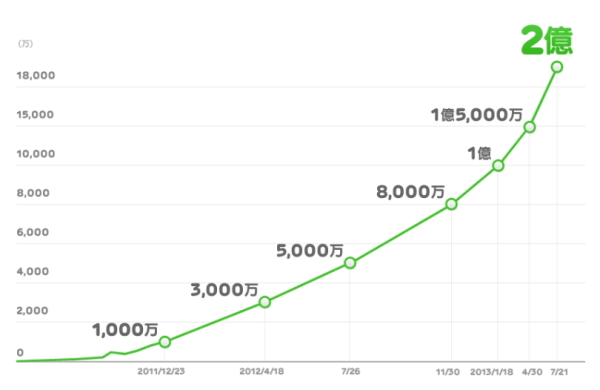 LINE、全世界でユーザー数が急上昇! 1億達成からわずか半年で2億ユーザー到達