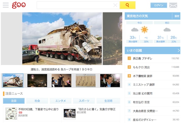 NTTレゾナント、タブレット版「goo」トップページを提供開始