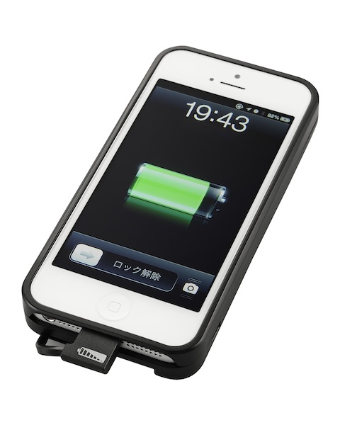 同製品は2000mAhのバッテリーを搭載したiPhone5専用ケースで、装着することでiPhone5の駆動時間を約1.6倍に伸ばすことが可能だ。また、Lightningコネクタを搭載しており、装着したまま充電できるほか給電オン・オフボタンで必要な時だけ効率的に充電できる。