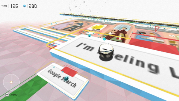 「World Wide Maze」は、タブ同期とも呼ばれるモバイル版Chromeとパソコン版Chromeの接続を利用して遊ぶサービス。立体迷路化されたWebサイトをパソコンのディスプレイで見ながら、スマートフォンのコントローラーでボールを動かしてゴールを目指す。迷路中には、得点となる球体や立方体が浮かび、階層を移動するエレベーターもあり、かなり遊べるという印象を受ける。