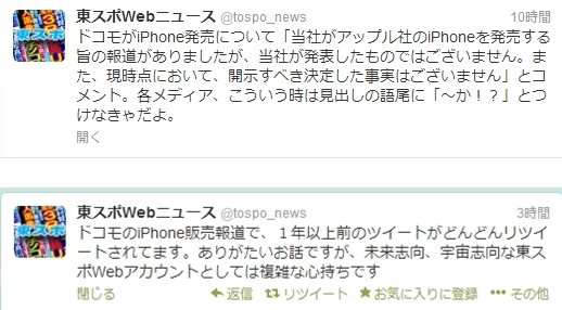 ネット上に「さすが東スポ!」の声--各メディアのドコモiPhone販売報道に対してツイート