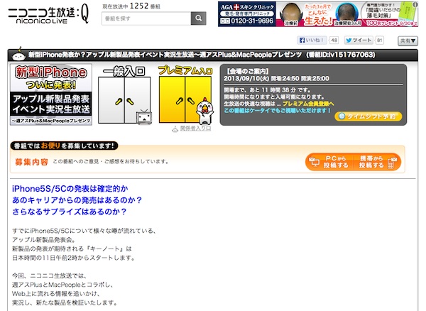 iPhone5S/5Cは発表されるのか? ニコニコ生放送で発表イベント実況生放送