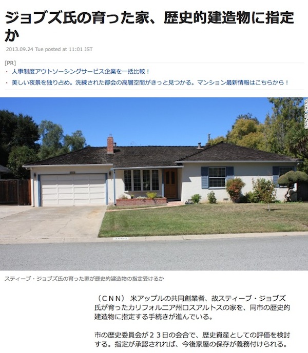 米Appleの共同創業者で知られる故スティーブ・ジョブズ氏が育ったカリフォルニア州ロスアルトスの家を、同市が歴史的建造物に指定する手続きが進められているとCNNが伝えた。