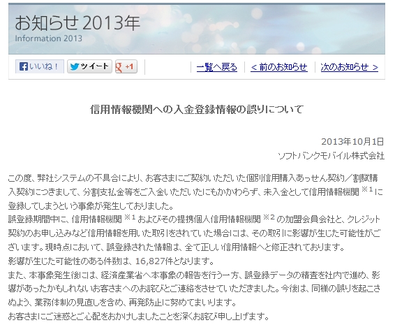 ソフトバンクモバイル株式会社は1日、ユーザーが契約した個別信用購入あっせん契約/割賦購入契約について、分割支払金などを入金したにもかかわらず、未入金として信用情報機関に登録していたと発表した。
