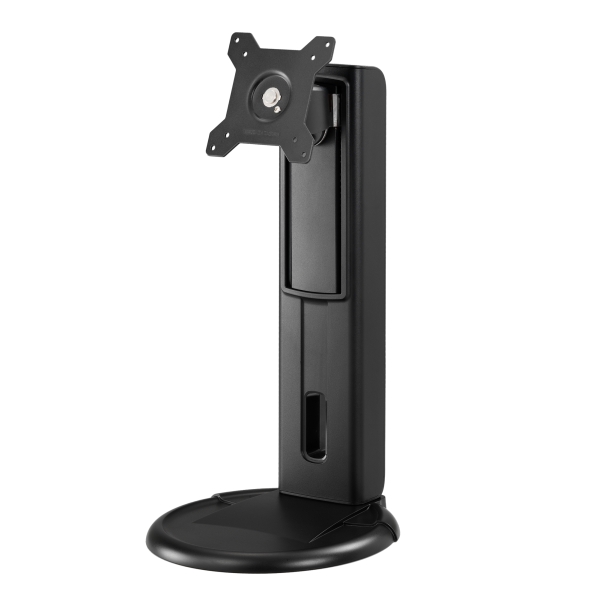 両製品はデスクにクランプなどで固定する必要のない台座式のディスプレイアームで、クランプ型のディスプレイアームと比較して設置の手間がかからない。ディスプレイの取り付けもディスプレイ背面にあるVESAのネジ留めのみで簡単に行える。
