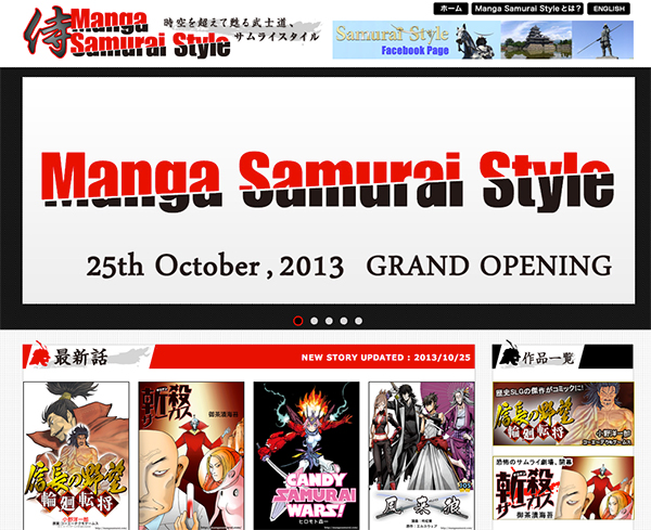 「Manga Samurai Style」は、日本語、英語同時配信を行い、有名ゲームとのタイアップや読者アンケートの意見によって物語のストーリーが決定していく読者参加型マンガ『Join the STORY』を展開するなど、新しい形でデジタルコミックを届けるポータルサイト。世界中から33万以上もの「いいね!」を獲得しているFacebookページ「Samurai Style」から派生した新サービスだ。また、更新は毎週金曜日に1作品ずつ行うとしている。