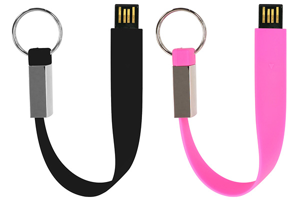 本製品は、ストラップ一体型で気軽に持ち運びできるタイプのUSBメモリだ。ストラップホールにストラップが装着されているわけではなく、USBメモリ本体自体がストラップの形状をしているユニークなモデル。コネクタ収納時にはストラップベルトが輪の形になる構造で、端にはキーリングが用意されており、鍵や鞄などに取り付けておくこともできる。本体サイズは190(幅)×11(高さ)×18(奥行)mmで、重量は約23g。