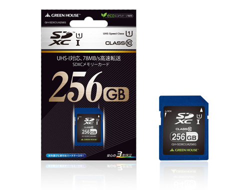 グリーンハウス、UHS-I対応で256GBのSDXCカード「GH-SDXCUA256G」を発売