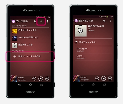 「WALKMAN」アプリでは、新規プレイリストの作成が簡単になり、曲順の編集もできるようになった。また、プレイリストから「最近再生した曲」を選ぶことが可能になった。