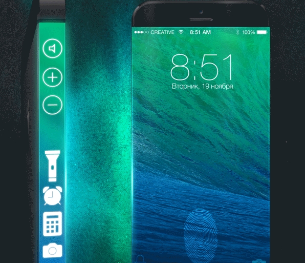 投稿したのはカザフスタンのデザイナーIskander Utebayev氏。iPhone 6のタッチパネルディスプレイを、サイドにも採用したデザインになっている。サイドのタッチパネルディスプレイには、ボリューム調節やアラーム・計算機などのアプリアイコンが配され、そのデザインは近未来的。これならば革新的な技術・スタイルで多くのファンを驚かしてきたスティーブ・ジョブズも満足するのでは、という出来栄えになっている。