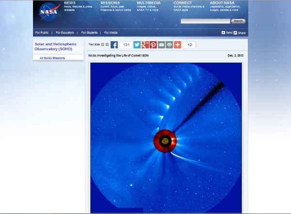 米航空宇宙局(NASA)は2日(米国時間)、太陽最接近後の「アイソン彗星」の軌道写真を公開し、彗星がかなり小さくなったと発表した。
