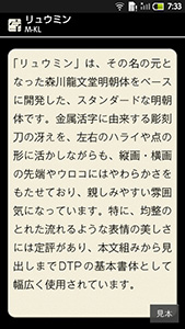 モリサワ、スマホ上で書体見本を確認できる「文字の手帖 for Android」