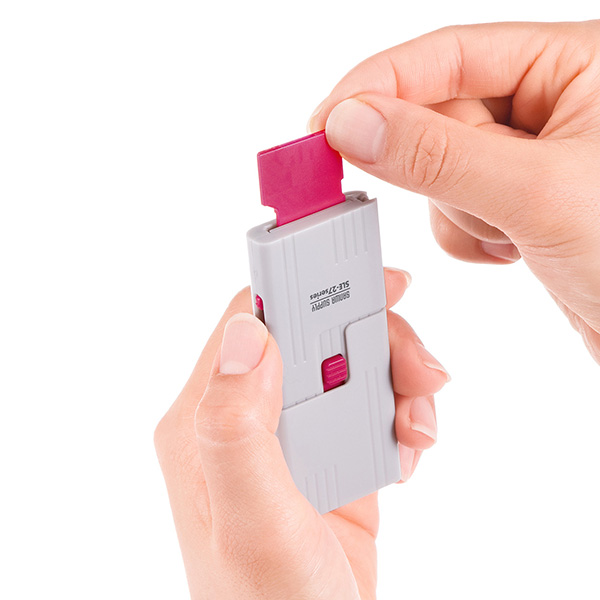 本製品を用いてSDカードスロットに設置した取り付け部品は、同じく本体を使用することで容易に取り外すこともできる。未使用時には、取り付け部品を本体内に収納することも可能。製品には、本体と取り付け部品が1個ずつ同梱されている。また、同製品の専用オプションとして、取り付け部品のみを5個入りにした「SLE-27*OPシリーズ」も発売。こちらも5色が用意されているが、「SLE-27シリーズ」の本体スイッチ部分と取り付け部品が同じ色の場合のみ、取り外し処理を行うことができる。「SLE-27*OPシリーズ」の標準価格は各1659円。