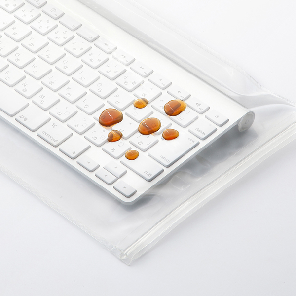 同製品は袋状になっているカバーで、有効内寸以内の大きさのキーボードやタブレットであれば対応機種を問わずさまざまな形状のものを入れられる。袋の入口部分にはジッパーが付いており、ジッパーを閉じれば簡易的な防水カバーとして使用できる。カバーは0.3mmの極薄素材であるエステル系ポリウレタンを採用しており、タブレットのタッチパネルにも対応。袋型なので片面が使用できなくなった場合でも、もう片方の面を使うことができる。