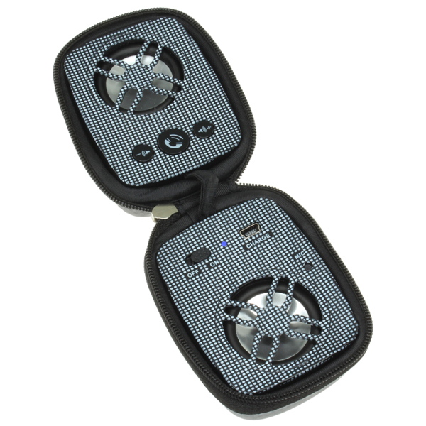 同製品は、通信速度と省電力性に優れた規格であるBluetooth3.0+EDR対応のコンパクトなワイヤレススピーカー。外装はカーボン調の模様になっており、折り畳み式で携帯性に優れている。iPhoneなどの「BAS(Battery Service)」プロファイル対応の機器と接続した際は、スピーカーのバッテリー残量状況を画面上で確認することが可能だ。