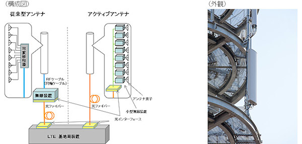 発表によると、アクティブアンテナを用いた基地局は、従来型と比較し広範囲のエリアをカバーできるため郊外における効率的なネットワークの構築や、災害発生時における被災状況に応じた通信ネットワーク対策が可能だ。今回の実験によって、基地局の電気的損失を4dB低減できることが明らかになった。これは基地局カバーエリアに換算すると、カバーエリアの面積が約1.7倍拡大することに相当するとしている。