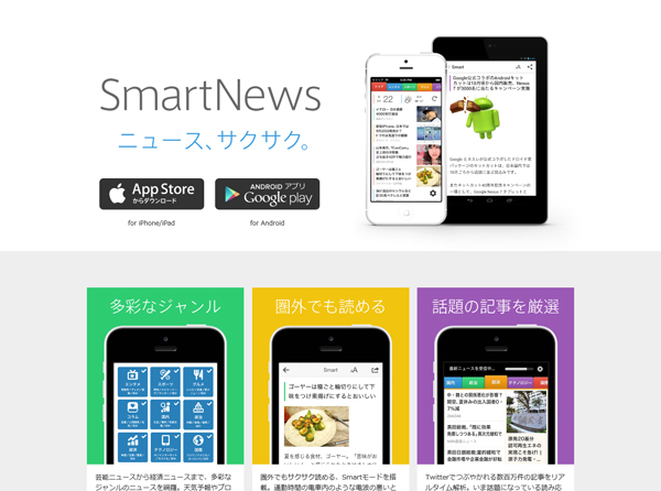 日本国内では、GunosyとSmartNewsがそれぞれ巨額の資金を集めて会員を増やしている。Gunosyは最近UIを一新したが、ライバルであるSmartNewsのUIと酷似していたためにFacebookやTwitter上で軽く炎上していたが、3月14日にKDDIとの事業・資本提携(12億円もの大型調達に成功)を発表し、さらにウルトラマンを起用したテレビCMを開始することで、状況は好転した。
