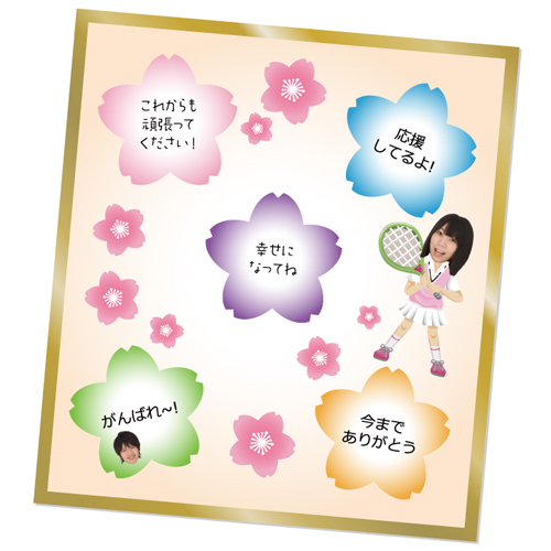 中央の人物写真を差し替えられる、色紙用のテンプレート。21cm×21cmと、一般的なサイズになっています。今回はこのテンプレートを使ってみたいと思います。