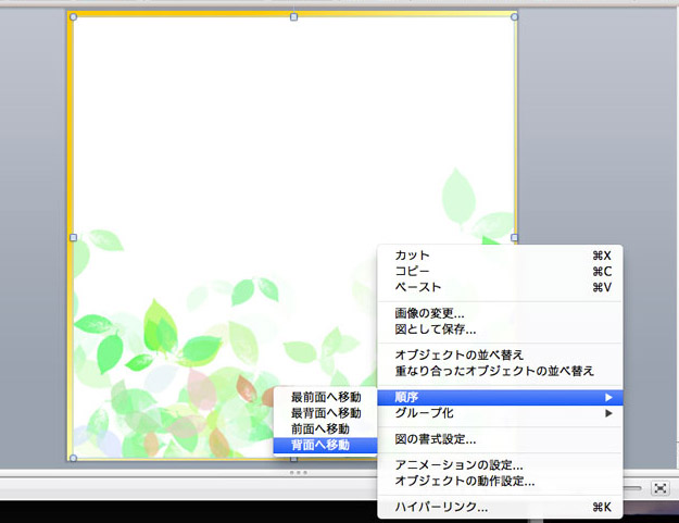 ![もし、文字や枠などの前面に画像が出てしまった場合は、画像を右クリック → [順序]で背面に移動させましょう。](attach/images/ne0_201403/yosegaki_d_008_140318130341.jpg)