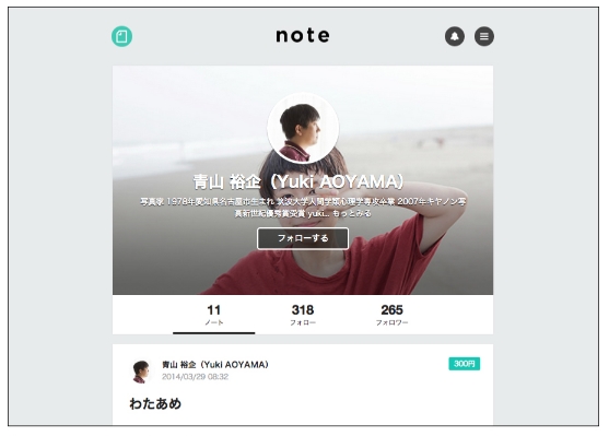 「note」は、文章や写真、イラスト、音楽、映像などの作品を投稿して、クリエイターとユーザーがつながることのできるWebサービス。ノートと呼ばれる作品は、無料公開はもちろん、ユーザー間で売買することも可能になっている。また、トーク機能や投稿機能などもあり、クリエイターを中心にしたSNS的な機能も有する。