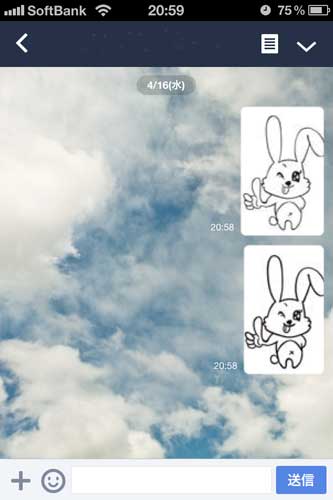 試しに、細い線で描いてみました。これをiPhone版のLINEで実際に見てみると…